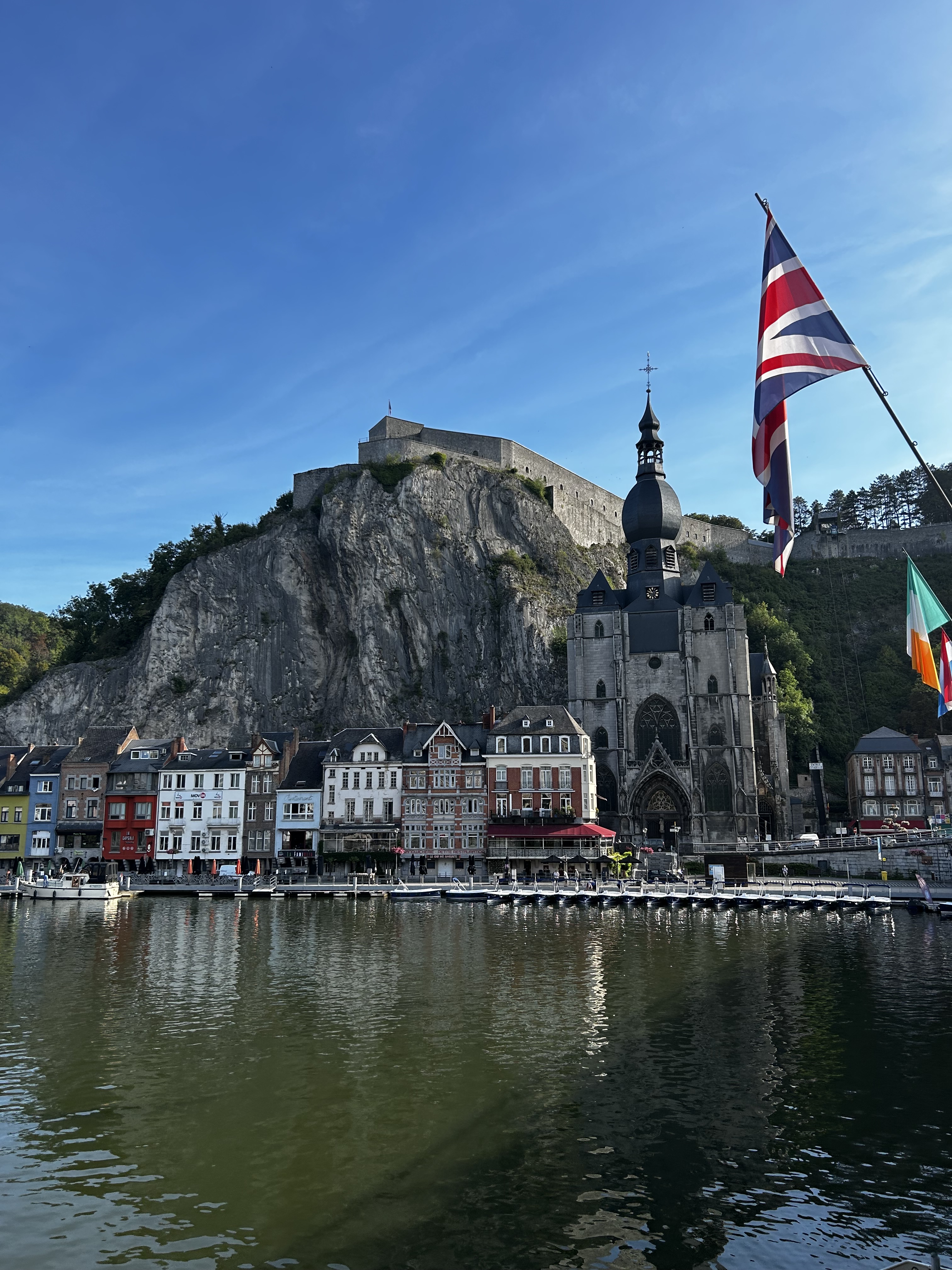 Tyskarna. Jag vet inte hur tyskar känner när de besöker Dinant. Dinant som var stället för ett av de värsta krigsbrotten under första världskriget. Över 600 civila avrättades för tyskarna fick för sig att det fanns skarpskyttar som sköt från dolda ställen. Inget pekar på att det var så. Staden brändes ner. Citadellet – här finns också ett citadell- var scen för bajonettslagsmål. 1000-tals döda på både franska och tyska sidan. Franska? Jo Belgien ville vara neutrala så de lät fransmännen slåss mot tyskarna. På belgisk mark.
