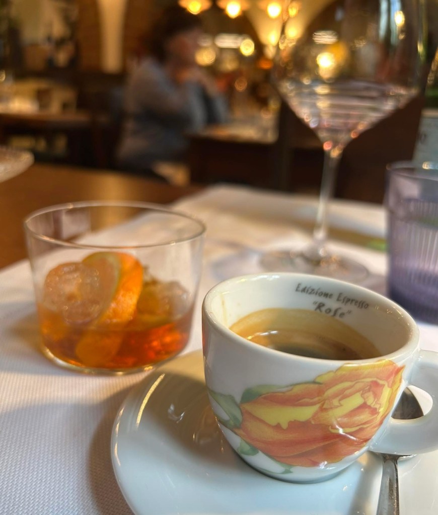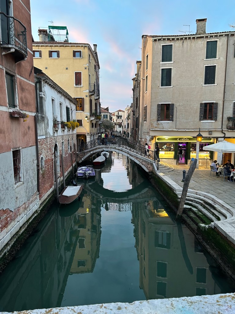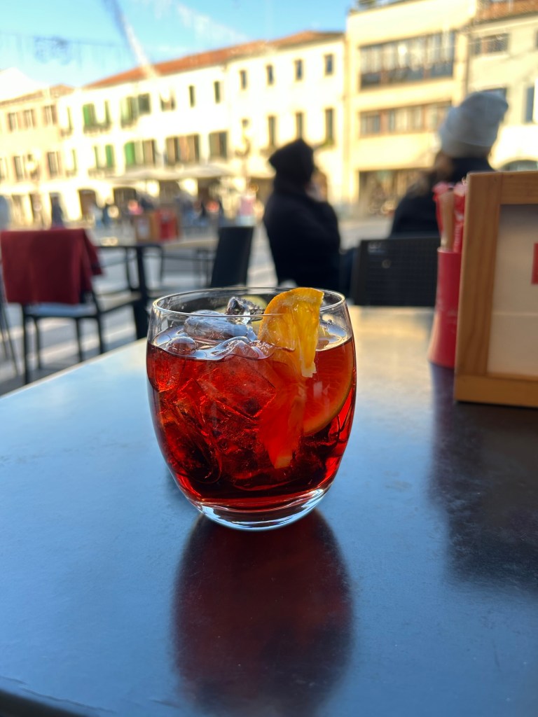 Sedan släpps jag fri. Hyresvärden -kollegan har en tid att passa. Jag hamnar på nåt sätt på rätt båt – virrar runt lite men Google Maps leder mig rätt. En Negroni och tillfredsställelse infinner sig. Inte för Negronin utan för alla intryck. Massa syre från båtresor. Turister som jag men som saknar guide och är därför insjunkna i sina mobiltelefoner medan världen visar upp sig.
