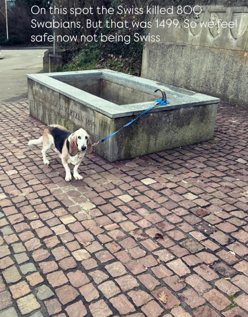 Och ett minnesmärke från 1499 där schweizarna dödade 800 Swabier – nån sorts tyskar . Och det var väl det som ledde till att landet blev ett land.