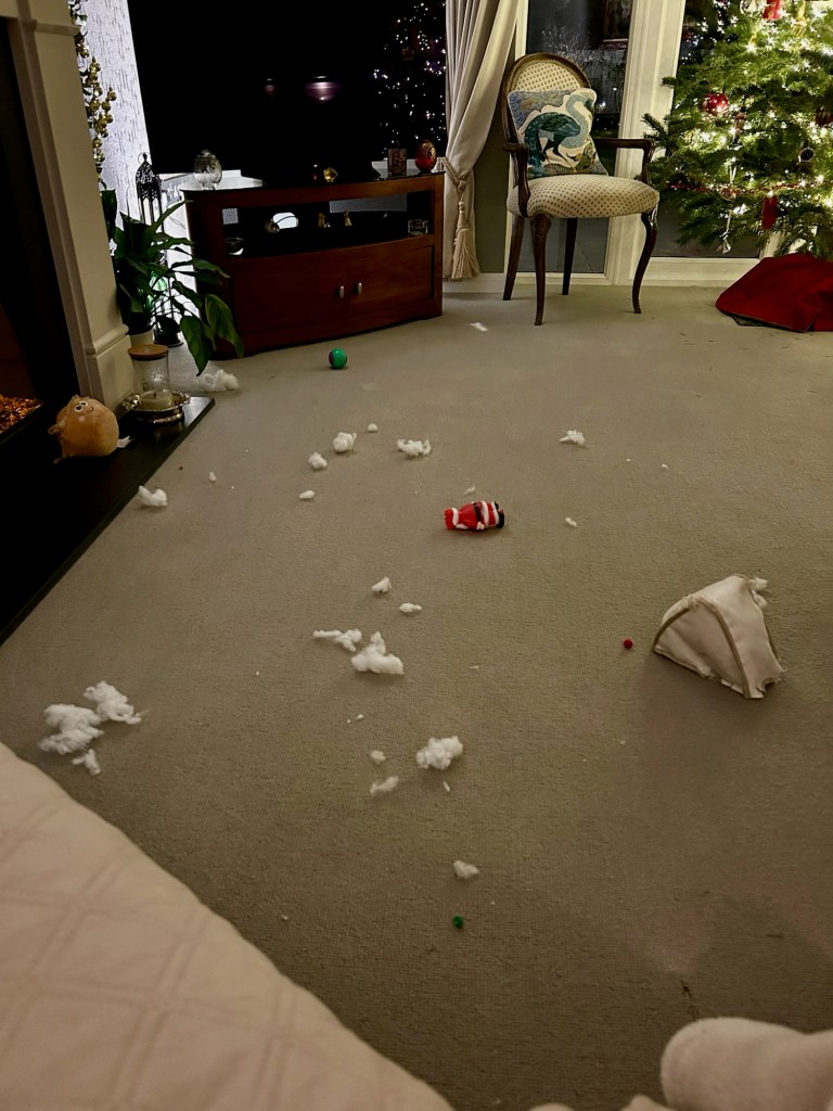Hundlivet balanseras av täta rapporter från Surrey – och Alfies och Minnies fortsatt söndertuggande av samtliga julklappar de fått.