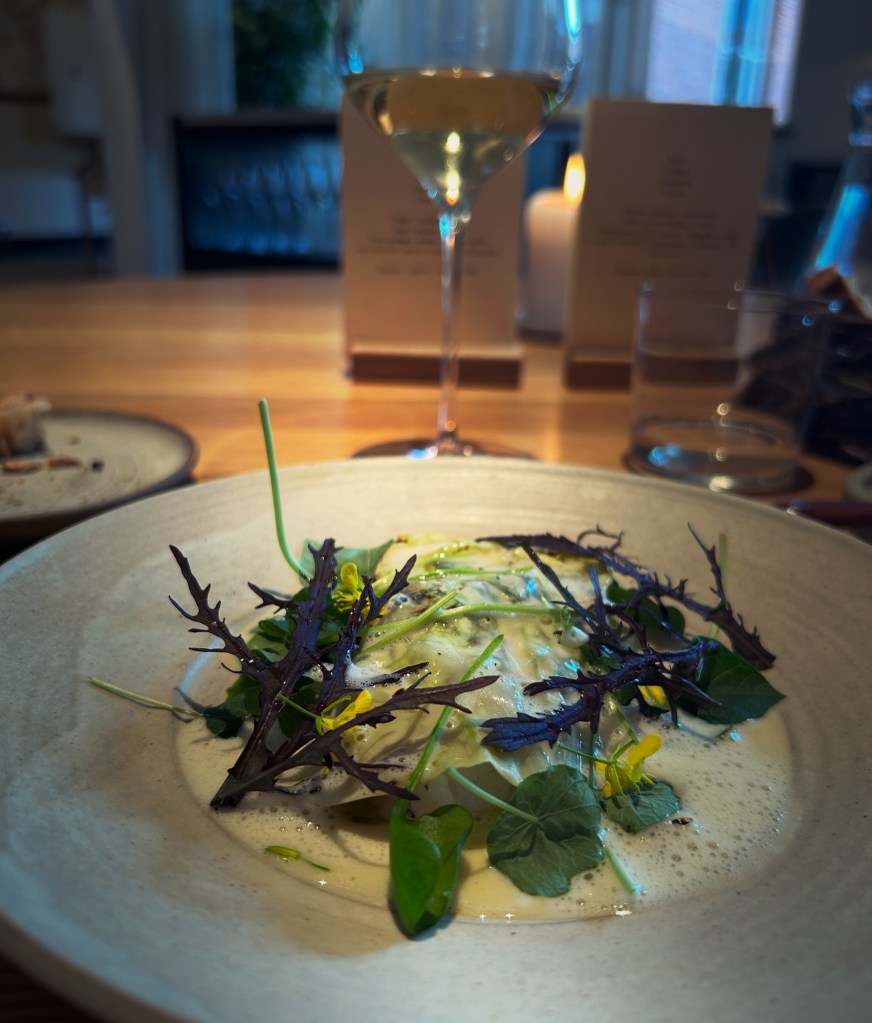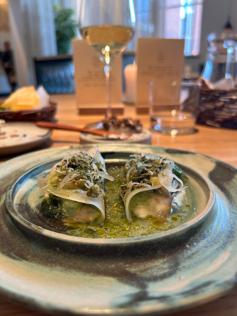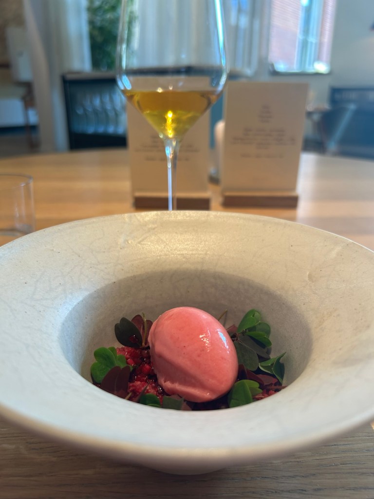 Men det är maten som lockat mig hit. En svårhittad restaurang med en Michelinstjärna. Neon. Tre år på nacken. Mycket fermenterat. Mycket ros-smak av ros-dippen. Mycket recycling. Gammalt bröd blir chips. Rosorna blir till rosendip.