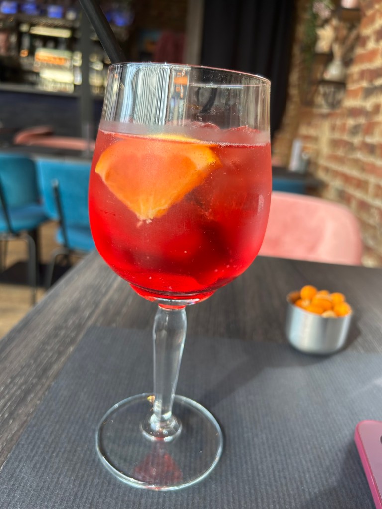 Baren är ytterligare en av de barer där jag är yngst vid mina 68 år. En dam har två hundar i en barnvagn. En annan dricker champagne kl 11.00.