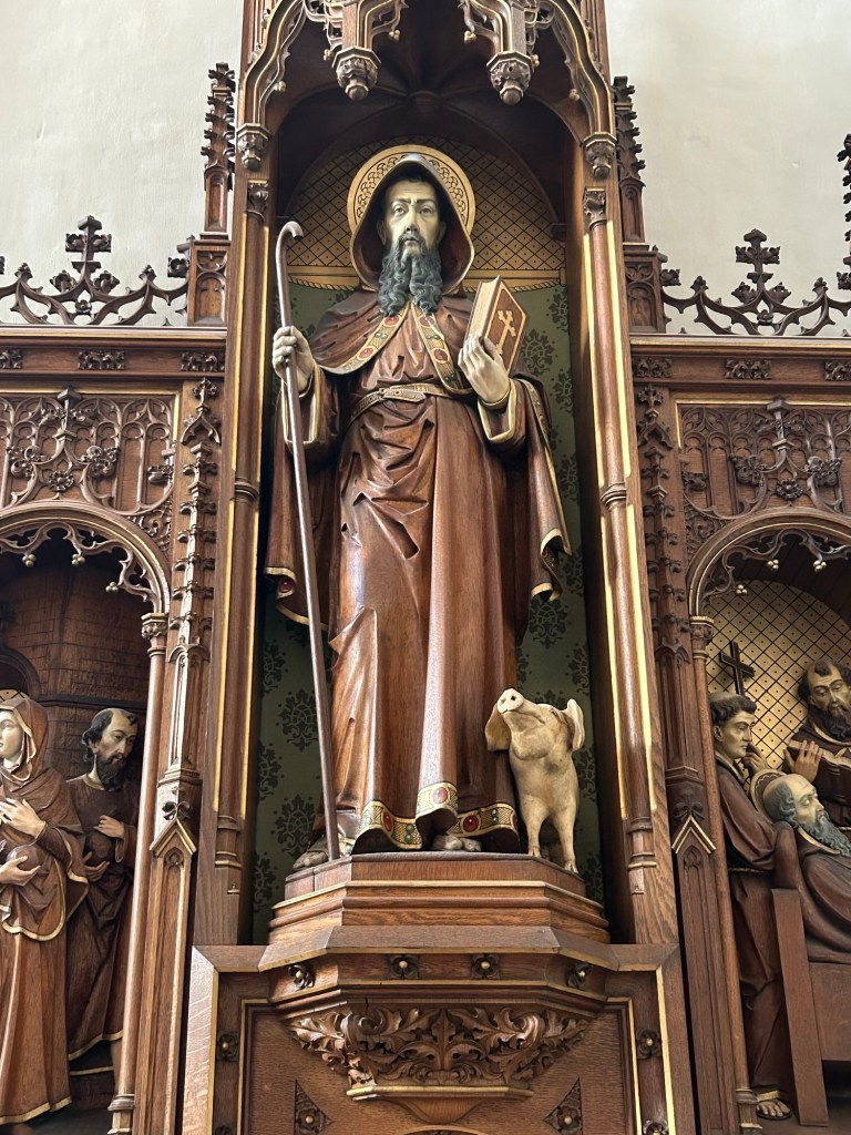 Liers skyddshelgon St Gummarus har ett ståtligt relikskrin. Jag vet inte om han ligger i skrinet. Förmodligen. Däremot är det lokala ölet döpt efter honom.