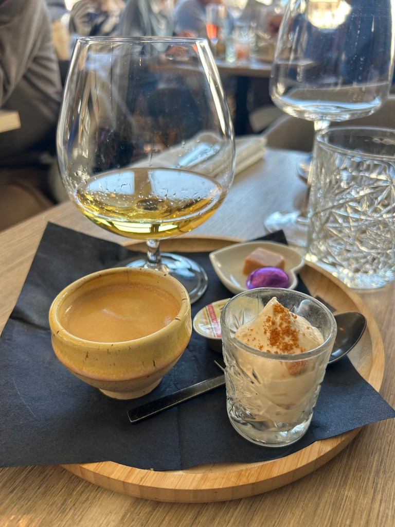 Jag rullar ut. Mest på grund av vin-paketet som hörde till maten. Och en servitör som fyllde på glasen hela tiden.