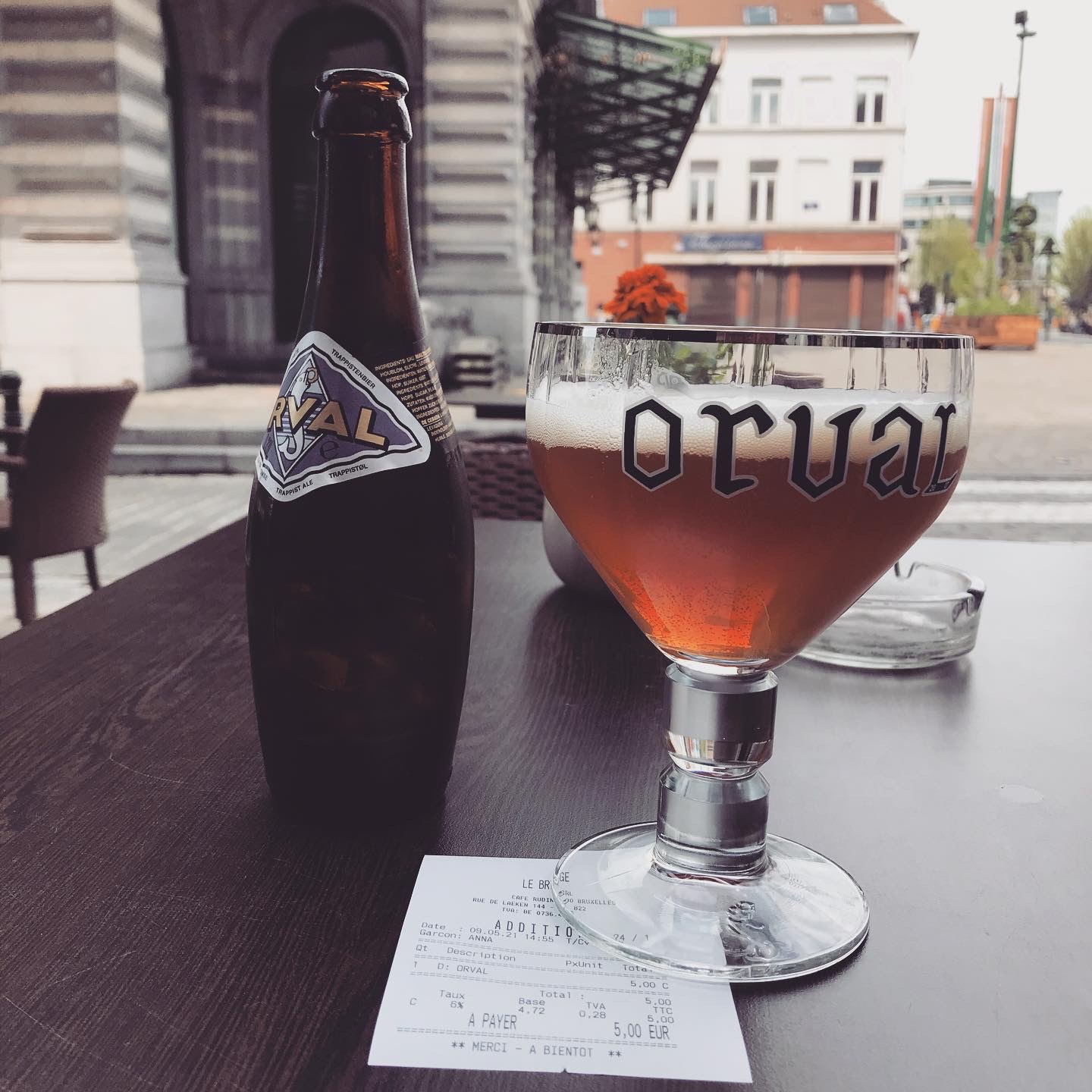 På söndag däremot – 26C och stark vind från söder. Letar upp en bar med riktning norr så södervinden inte når oss. Och Le Bridge har infört Orval på menyn. Bra så.