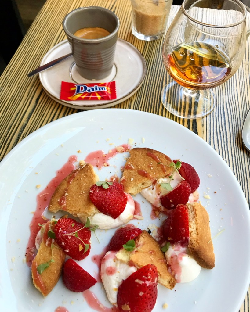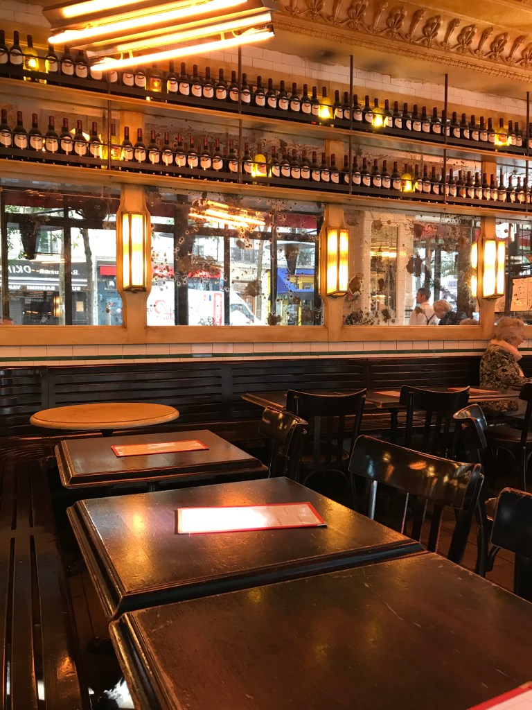 Söndag blir en vandring runt Quartier Latin – en favorit från 2018 är stängd – ser igenbommad ut. Stolarna dammiga och stapalde på varandra. Synd. Tar fram Tripadvisor – appen på jakt efter ett alternativ. Upptäcker att jag står 5 meter från en krog med spännande meny.