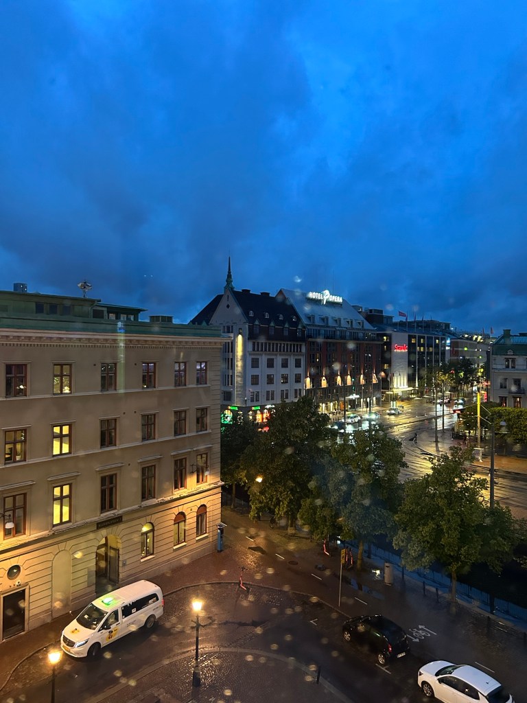 Radisson Blu hotellet. Jag har ett klart minne av att jag bodde här 2014 men då såg rummen ut som om de vore dekorerade av en färgblind designer. Nu är det sobert. Tack.