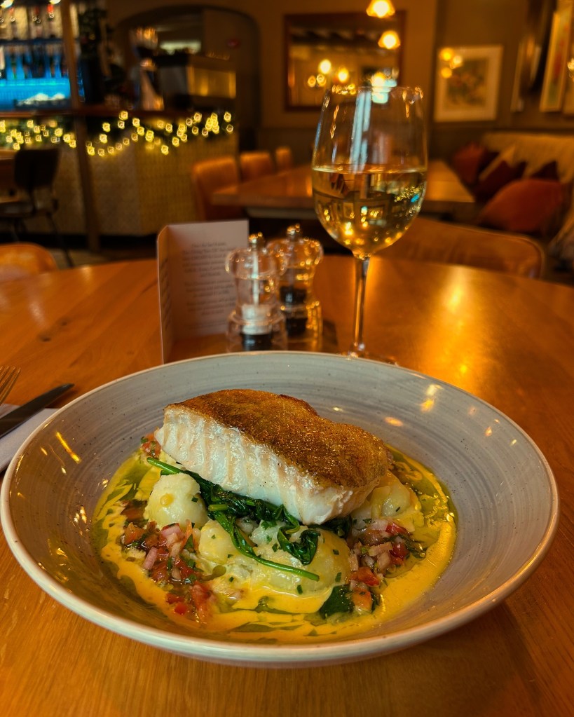 Manchester. Maj. Daisy. 3 veckor med liten hund. I Manchester har jag inte varit sedan 2018 – helgkurs om kooperation. Ett restaurangbesök där alla utom jag svärmade runt ett bord där nån sorts fotbollstränare satt med familj. Men kalvkotletten var god.